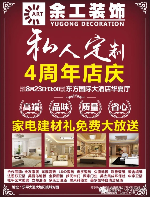Copyright © 江西余工装饰有限公司 版权所有 在线客服QQ: 电话: 0792-8223858 8226885 传真:0792-8223858 E-mail:sales@yugdec.com 全国免费服务热线:400-880-9555 公司地址:九江市九龙街与南海路十字路口德晟豪庭17号 邮 编:332000